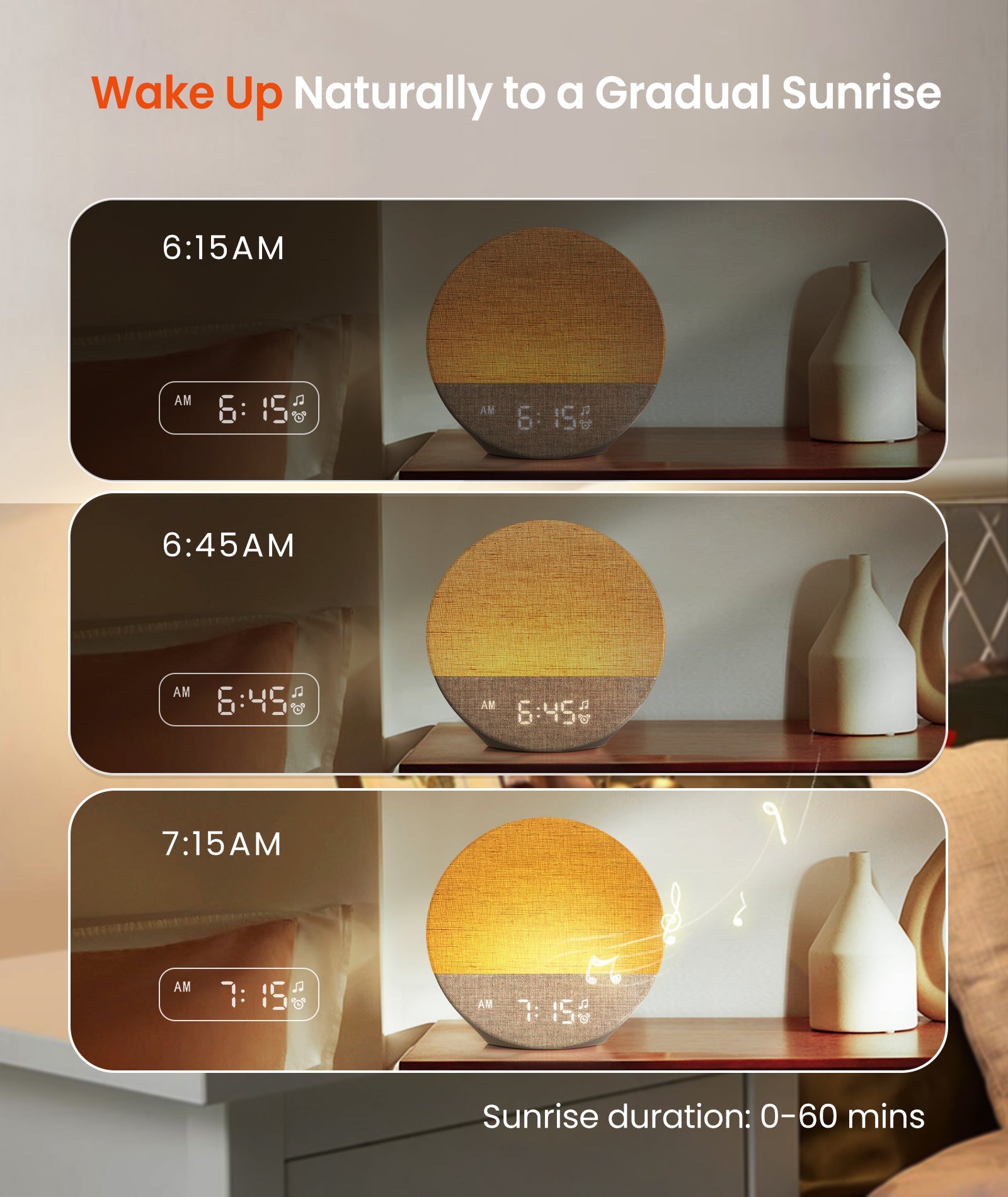 Simula l'alba e suoni dolci per svegliarsi rilassati